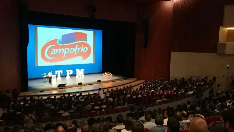 Reyes Maroto, ministra de Industria, responde a un trabajador de Campofrío por el suelo de los políticos.