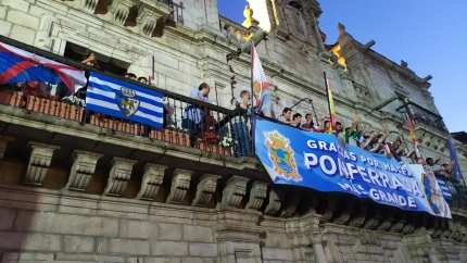 Fiesta del ascenso de la Deportiva Ponferradina a Segunda A en la Plaza del Ayuntamiento