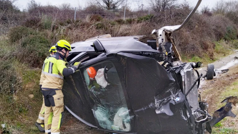 Heridos leves un matrimonio y su bebé de nueve meses tras el vuelco de un turismo en Bembibre