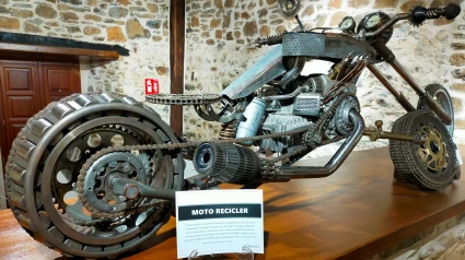 El rey del reciclaje motero expone en la oficina de turismo de Molinaseca