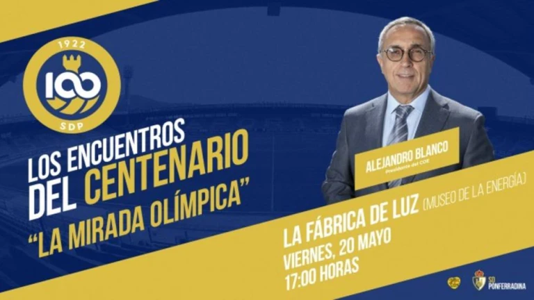 La Deportiva Ponferradina celebra este viernes, 20 de mayo una nueva cita de los ‘Encuentros del centenario’. En esta ocasión, el protagonista de 'La mirada olímpica' será Alejandro Blanco, presidente del Comité Olímpico Español. El acto se celebrará a las 17:00 horas en la Fábrica de Luz (Museo de la Energía).