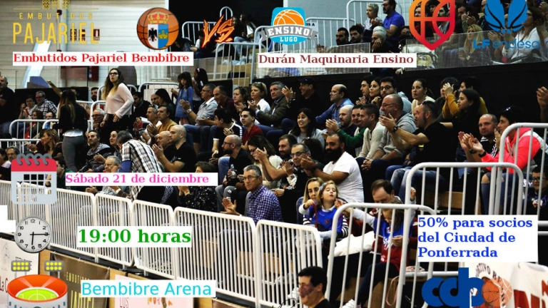 Con este pretexto se mantiene esta promoción para los abonados del club presidido por Óscar García que presenten su carné al acceder al Bembibre Arena para asistir el sábado 21 de diciembre al encuentro de la Liga Femenina Endesa que disputará desde las 19:00 horas la escuadra rojilla frente al Durán Maquinaria Ensino, un duelo de proximidad que se presenta apasionante y en el que se espera la llegada, debido a la proximidad de las poblaciones de ambos equipos, de un gran número de hinchas procedentes de la capital lucense.