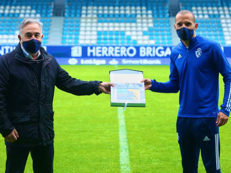 También el delantero Yuri ha recibido otra placa como máximo goleador histórico de la Deportiva y por superar los 200 partidos en el fútbol profesional con los bercianos.
