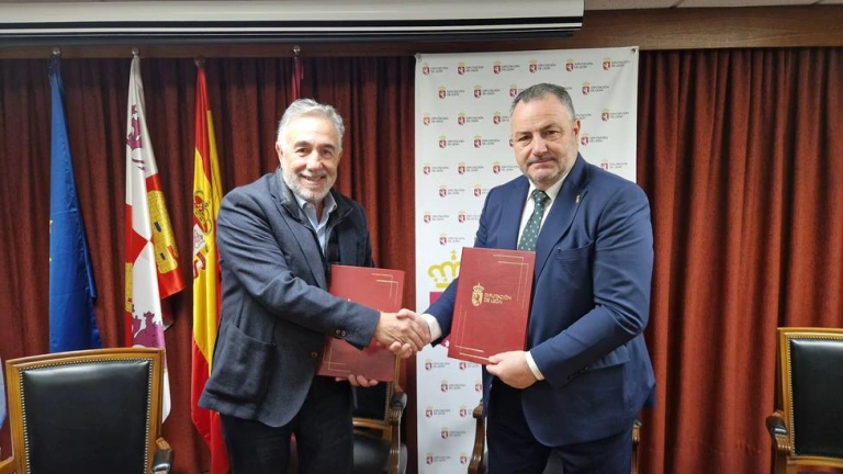 El presidente de la Diputación, Eduardo Morán, y su homólogo de la Sociedad Deportiva Ponferradina, José Fernández Nieto, han firmado este lunes un convenio de colaboración por el que la institución provincial aporta 100.000 euros para contribuir a la financiación de actividades organizadas por el club durante este 2022 con motivo de su centenario.
