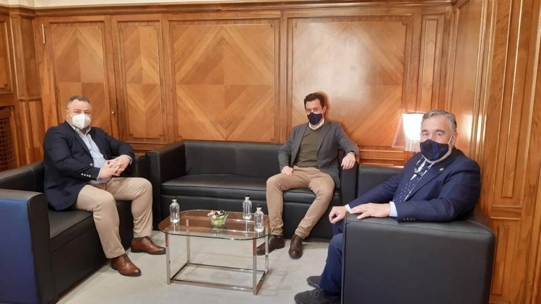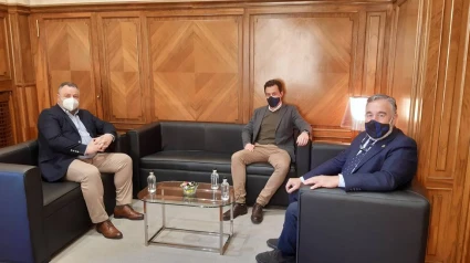 El presidente de la Diputación de León, Eduardo Morán, ha recibido este martes en el Palacio de los Guzmanes al presidente de la Deportiva Ponferradina, José Fernández Nieto, y el consejero delegado, Eduardo Domínguez, que han querido presentarle el programa de actividades previsto para conmemorar el centenario del club de fútbol más veterano de la comunidad.