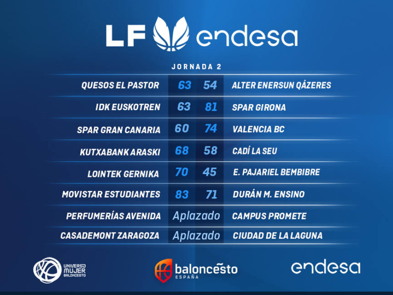70-IDK Euskotren (21+17+15+17): Cornelius (3), Lo Sylla (8), Paula Ginzo (9), Bjorklund (11) y Roso Buch (5) quinteto inicial- Díez (0), Belén Arrojo (2), Ariztimuño (4), Colhado (13), Alberdi (0), Roundtree (6), Ivanovic (9). Entrenador- Mario López.