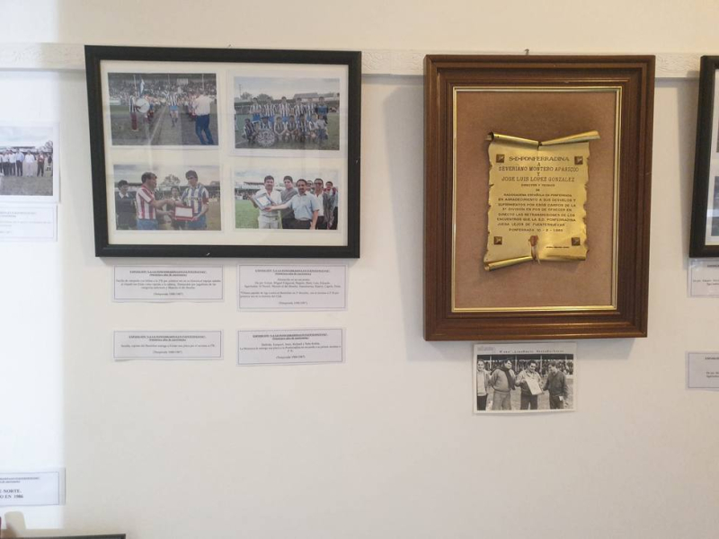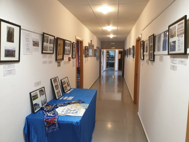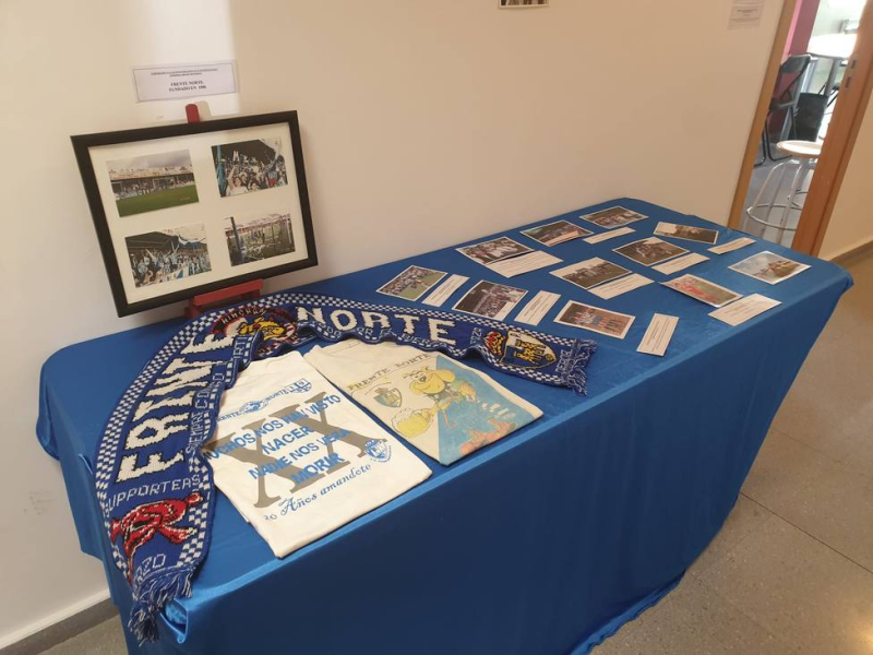 La muestra recoge fotografías y material gráfico correspondiente al periodo 1975-2000, durante el cual los blanquiazules jugaron en el campo de fútbol de Fuentesnuevas.