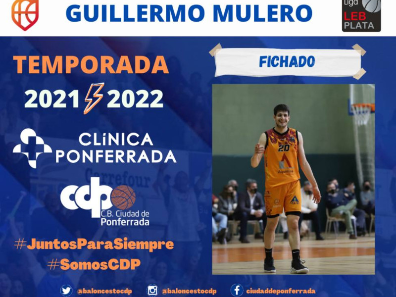 Ya va cogiendo cada vez más forma el proyecto berciano, y ya faltan menos piezas en el puzzle del CB Ciudad de Ponferrada para completarlo de cara a la próxima campaña en LEB Plata. En esta ocasión se trata de la incorporación de Guillermo Mulero, un jugador que viene de realizar una gran temporada en Aquimisa Carbajosa dónde en 28 partidos promedió 10’6 puntos, 3’3 rebotes y 1’7 asistencias con un total de 10’4 de valoración, además de jugar más de 26 minutos por encuentro.