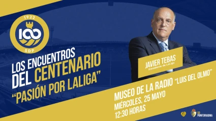Javier Tebas participa este miércoles, 25 de mayo, en los 'Encuentros del Centenario' de la Deportiva Ponferradina. El presidente de LaLiga visitará el estadio de El Toralín y, posteriormente, intervendrá en el coloquio, que se desarrollará en el Museo de la Radio ‘Luis del Olmo’ a las 12:30 horas.
