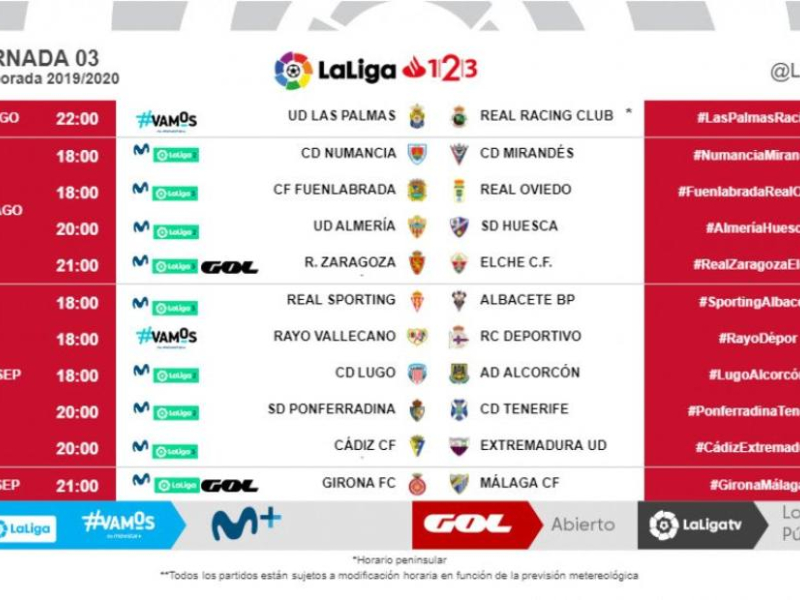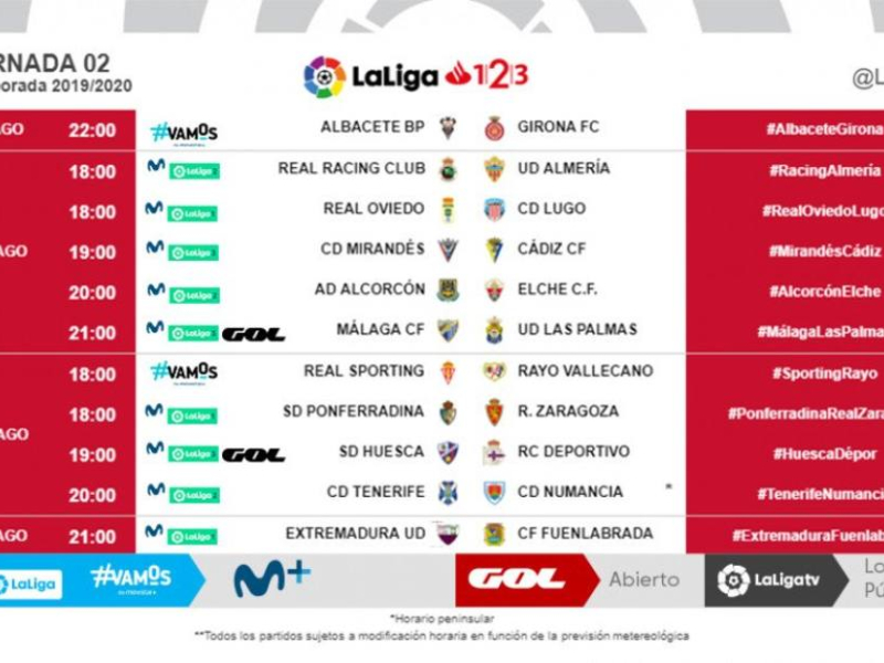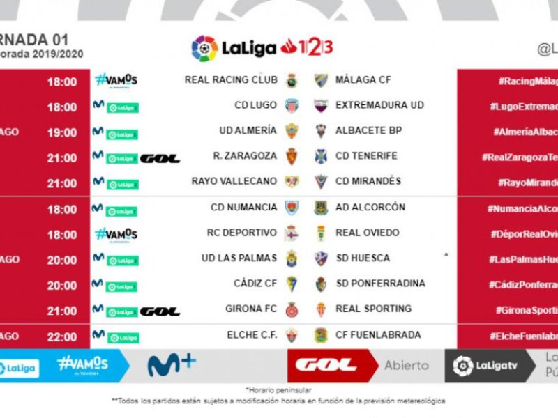 LaLiga da a conocer los horarios de las primeras jornadas de Segunda A