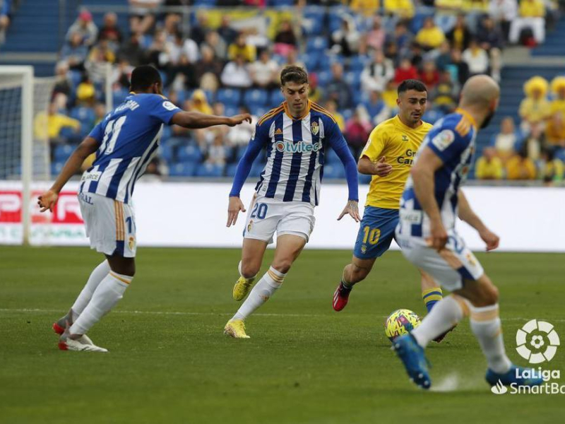 Fue una de las escasas llegadas de un equipo, el de David Gallego, que refleja sobre el campo la desconfianza que provoca su delicada clasificación, quitándose el balón de encima muy rápido, sin encontrar a sus jugadores de mayor talento, como los grancanarios Dani Ojeda y Edu Espiau, o al propio Naranjo.