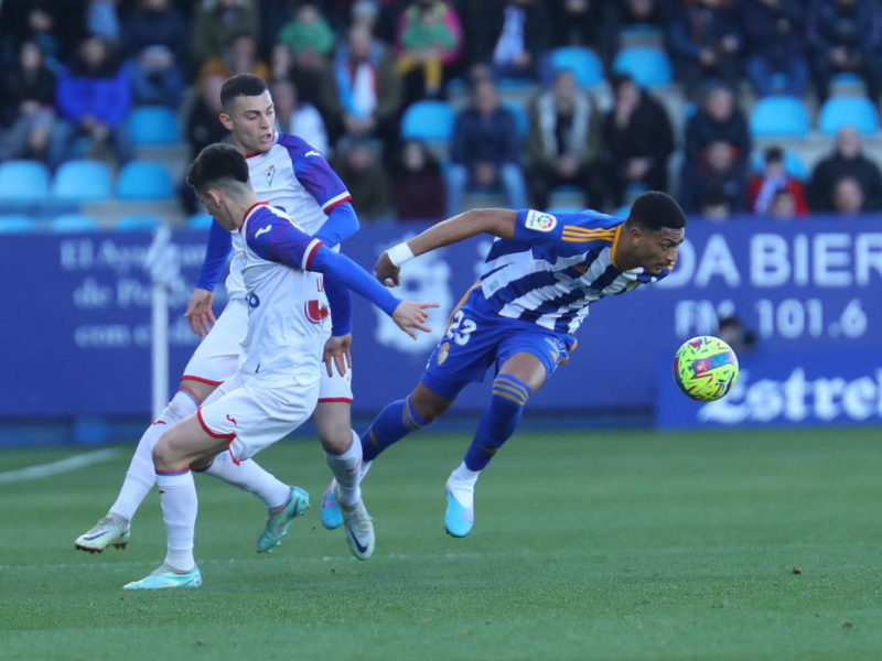 Nada más reanudarse el choque, una acción de Ojeda sobre la incorporación del lateral navarro Paris Adot permitió al defensor lanzar un disparo con la izquierda envenenado que encontró una mano del guardameta visitante.