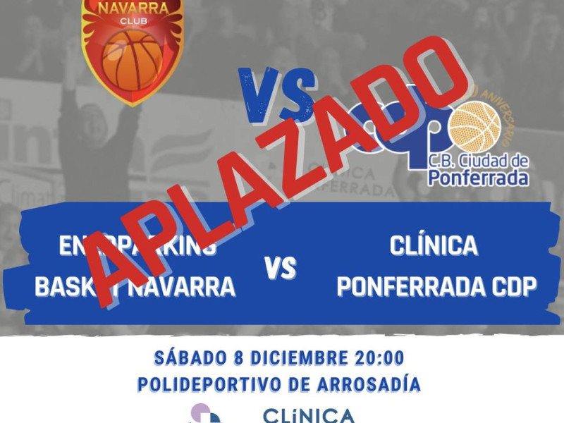 El partido entre el CB Navarra y CB Ciudad de Ponferrada que se iba a disputar este sábado ha quedado aplazado por estos tres casos positivos en la plantilla berciana.