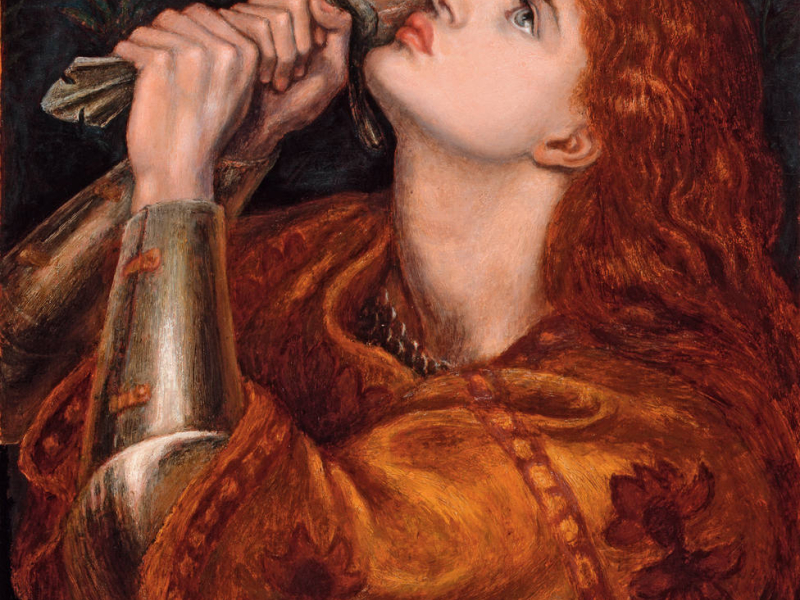 Nacida en Domrèmy el 6 de enero de 1412 en el seno de una familia campesina acomodada, su infancia se vería tristemente marcada por La Guerra de los Cien Años que enfrentó al primogénito de Carlos VI de Francia con Enrique VI de Inglaterra por el control del trono francés. Nuestra protagonista relataba desde muy temprano edad una serie de visiones en las que San Miguel Arcángel, Santa Margarita y Santa Catalina de Alejandría le encomendaban la misión de salvar a su país de las garras del enemigo inglés. Así, una jovencísima Juana de Arco se ve impelida a luchar, liderando con gran éxito una milicia de más de 5000 hombres, logrando la victoria durante el asedio a Orleans, haciendo posible con este triunfo la coronación de Carlos VII de Francia en 1492. Apresada por los borgoñones en el asedio de Compiègne y a merced de los ingleses, es falsamente acusada de herejía y brujería, condenada a morir en la hoguera. En 1456 casi tres décadas después, el PAPA Calixto III tras reabrir el proceso y estudiarlo concienzudamente, desmiente las acusaciones declarándola inocente y mártir.