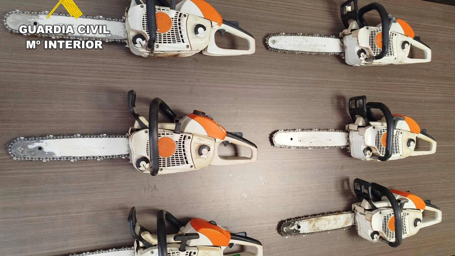 La Guardia Civil ha recuperado seis motosierras sustraídas por el joven de 21 años, antiguo trabajador de la empresa afectada en Arlanza, en el municipio de Bembibre