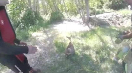 Los bomberos de Ponferrada rescatan a un corzo que cayó a un canal en el río Boeza