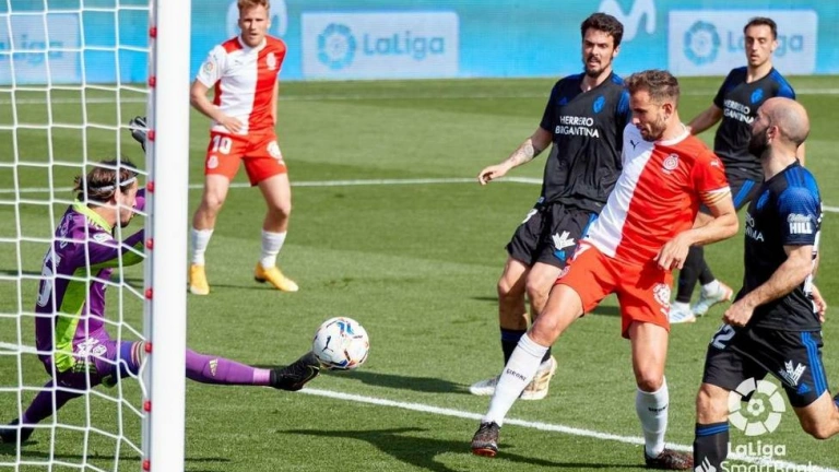 Los catalanes marcaron por medio de Stuani (min. 45+1), Samu Saiz (min. 51) y Bustos (min. 85). El tanto del honor para la Deportiva lo consiguió Yuri (min. 90)
