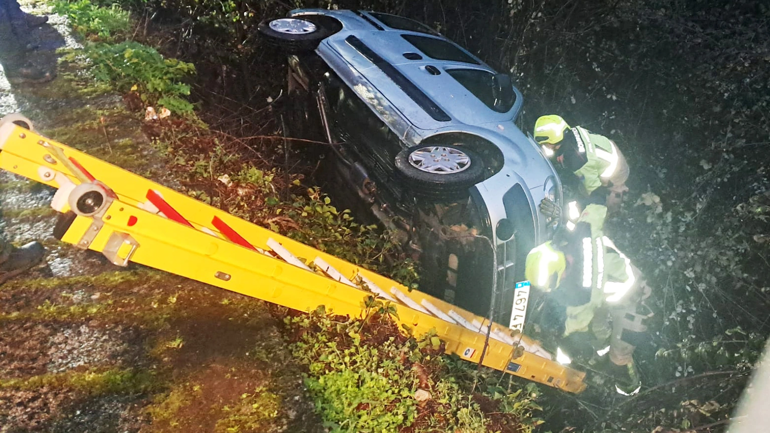 Rescatan a un conductor atrapado tras caer con su furgoneta por un terraplén en Villafranca del Bierzo (León)