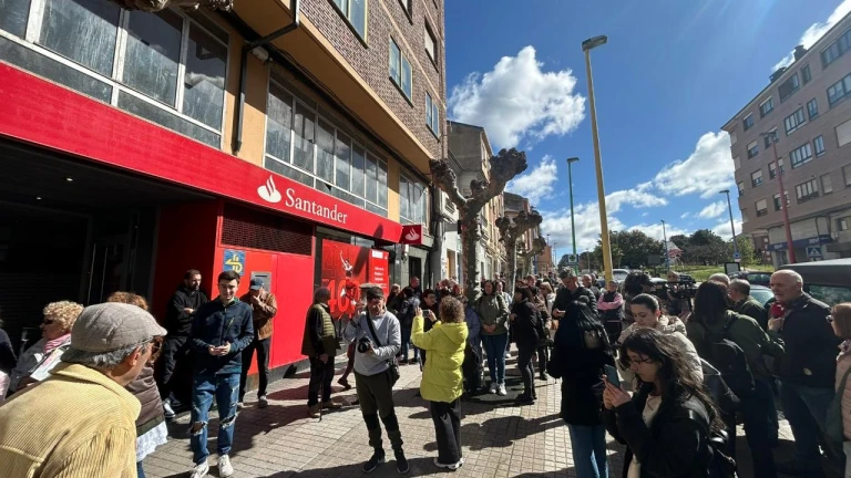 Vecinos de Flores del Sil se manifiestan ante el inminente cierre de la sucursal del Banco Santander