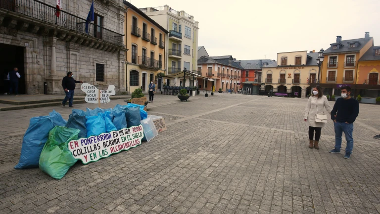 Proyecto Orbanajo deposita a las puertas del Ayuntamiento de Ponferrada una docena de sacos de basura