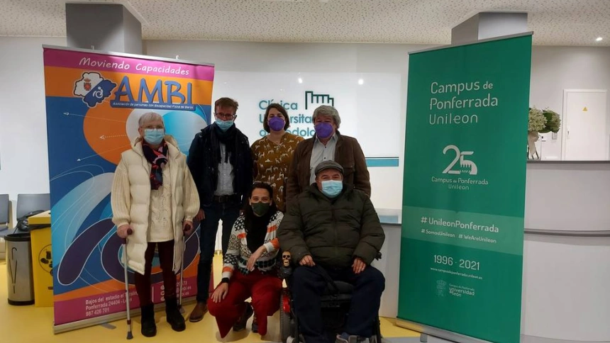 Representantes de Ambi, Asociación de personas con discapacidad física del Bierzo, junto a la directora clínica Bibiana Trevissón y Natalia Arias Ramos como subdirectora de la clínica universitaria de la facultad de Podología de la ULE en el Campus de Ponferrada, han firmado un convenio de colaboración para promocionar el cuidado de los pies como eje central de la salud para las personas de la asociación.