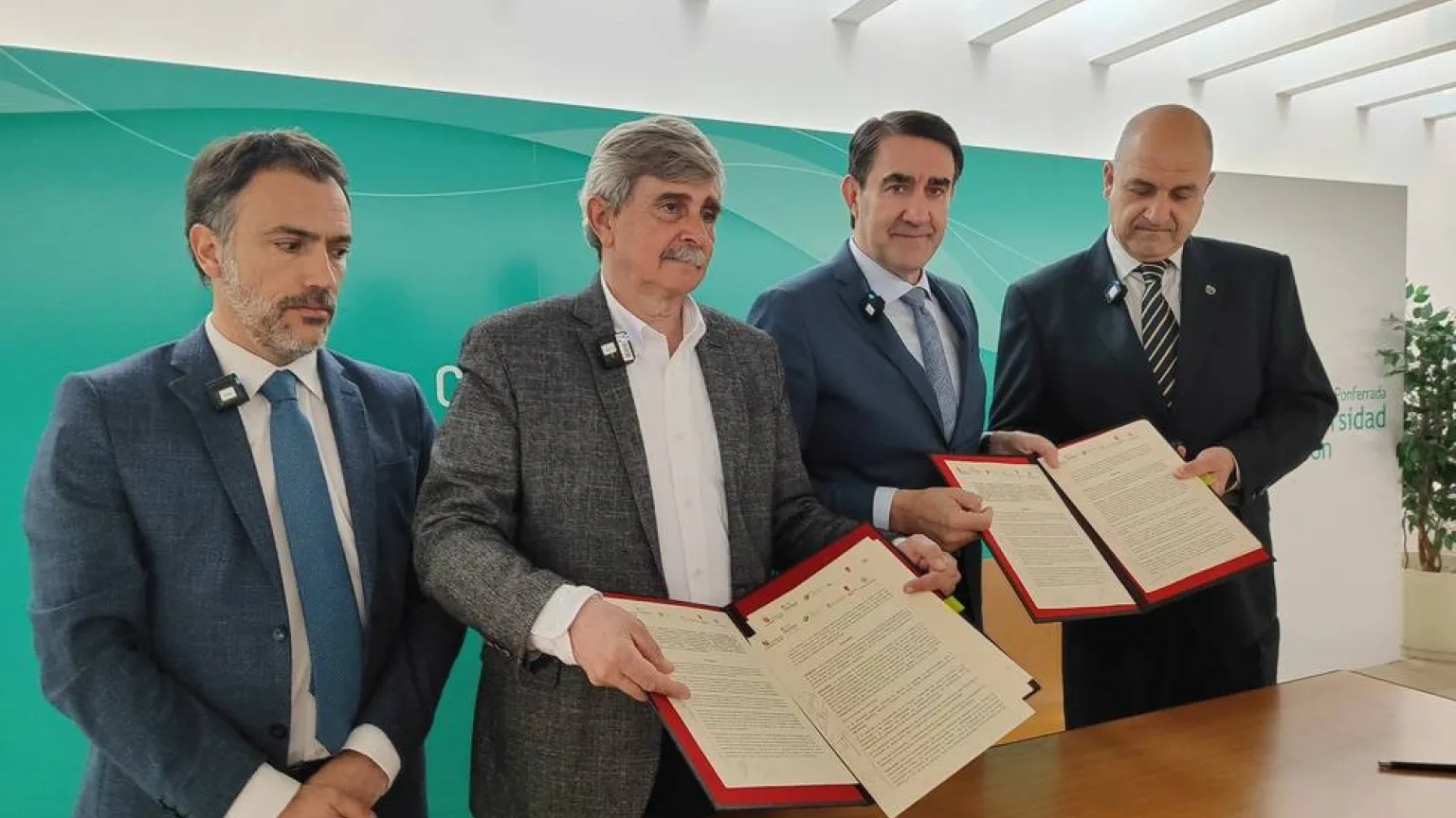 El ámbito de este protocolo firmado este martes con el rector de la Universidad de León, Juan Francisco Martín; el decano autonómico del Colegio de Ingenieros de Montes, Asier Saiz, y el decano territorial del Colegio Oficial de Ingenieros Técnicos Forestales y Graduados en Ingeniería Forestal y del Medio Natural, José Antonio Gallegos, en el Campus de Ponferrada de la Universidad de León (ULE) -en pasados días se suscribió uno similar con la Universidad de Valladolid en el Campus de Palencia- prevé las actuaciones oportunas para una mejor divulgación de las actividades forestales y de conservación del patrimonio natural y para la promoción de los estudios forestales universitarios.