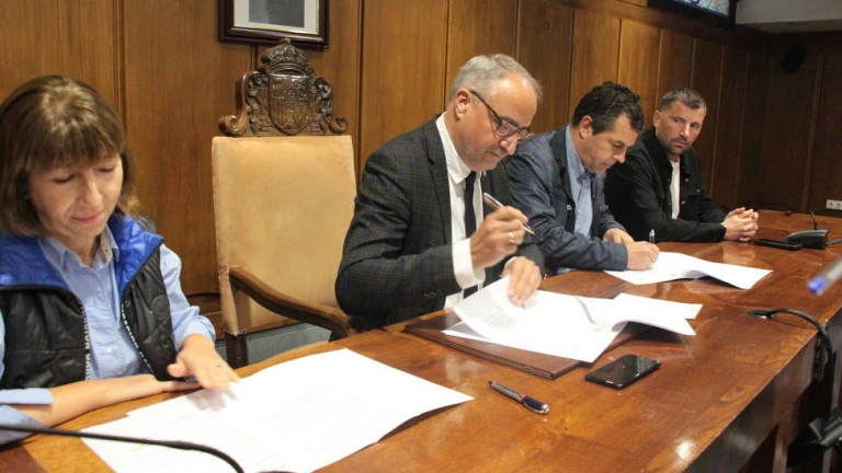 En la firma, celebrada en el Salón de Sesiones del Consistorio ponferradino participaron el alcalde de Ponferrada, Olegario Ramón, y el presidente de Fele Bierzo, Javier Morán. También estuvieron presentes la concejala de Hacienda, Mabel Fernández, y el concejal responsable de la Escuela Taller, Iván Castrillo, así como técnicos municipales del área de formación y empleo.