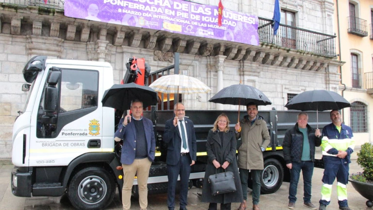 El Ayuntamiento de Ponferrada ha presentado este jueves públicamente el nuevo camión con carrocería basculante y grúa destinado a la Brigada Municipal de Obras. La adquisición de este vehículo ha tenido un coste de 105.875 euros, IVA incluido, y su compra fue adjudicada a la empresa Martinauto SL, concesionario Iveco.