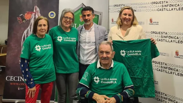 En la presentación esta mañana del evento han estado presentes Raquel Factor, directora técnica del Consejo Regulador de la IGP Cecina de León, Pablo Ibáñez, miembro de la Junta directiva de ELA CyL, María Isabel Blanco Llamas, consejera de Familia e Igualdad de Oportunidades de la Junta de Castilla y León, y Rafael Hernando de Diego, afectado de ELA.