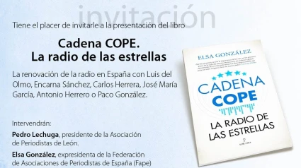 La Asociación de Periodistas de León (APL) y la sala de Ámbito Cultural de El Corte Inglés de León han invitado a la periodista leonesa Elsa González a presentar su libro ‘Cadena COPE. La radio de las estrellas’ en León mañana martes 7 de febrero a partir de las 19:30 horas en la sala de Ámbito Cultural de El Corte Inglés ubicada en la sexta planta. La entrada es libre hasta completar aforo.