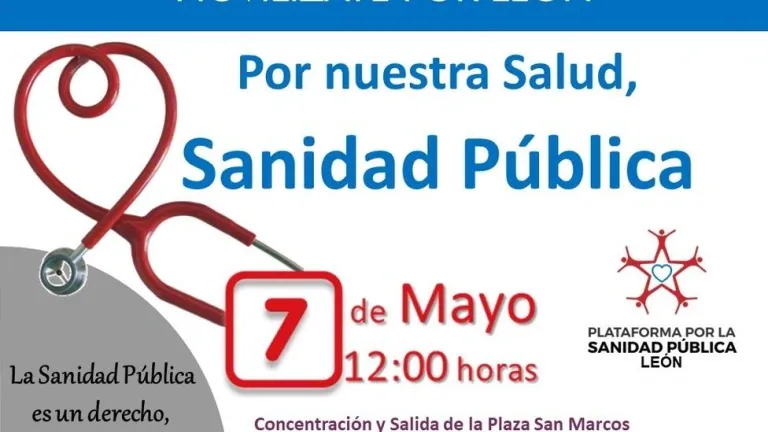 La Plataforma por la Sanidad Pública de León celebrará este domingo, 7 de mayo, una manifestación por las principales calles de la ciudad para demostrarle a la Consejería de Sanidad y a la Junta de Castilla y León que “no está en venta” después de los “continuos ataques por las políticas de derecha y ultraderecha que se manifiestan con recortes, privatizaciones, promesas incumplidas, puestos de difícil cobertura, la precarización del empleo y las listas de espera”.