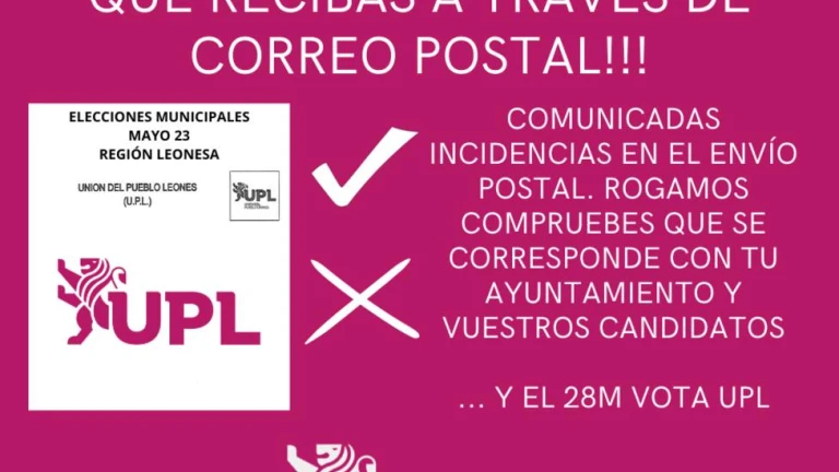 La Unión del Pueblo Leonés (UPL) ruega a sus votantes que comprueben esas papeletas electorales antes de votar, tras detectarse una incidencia en el envío postal por parte de la empresa contratada por la formación leonesista.