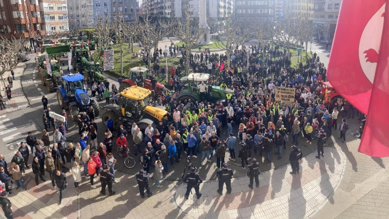 Agricultores y ganaderos se movilizan con sus tractores en señal de protesta en la ciudad de León