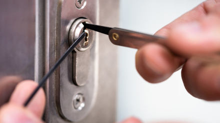 Entre los enseres y herramientas que les incautaron se encontraba un bombín nuevo que tenían previsto cambiar en la puerta del inmueble