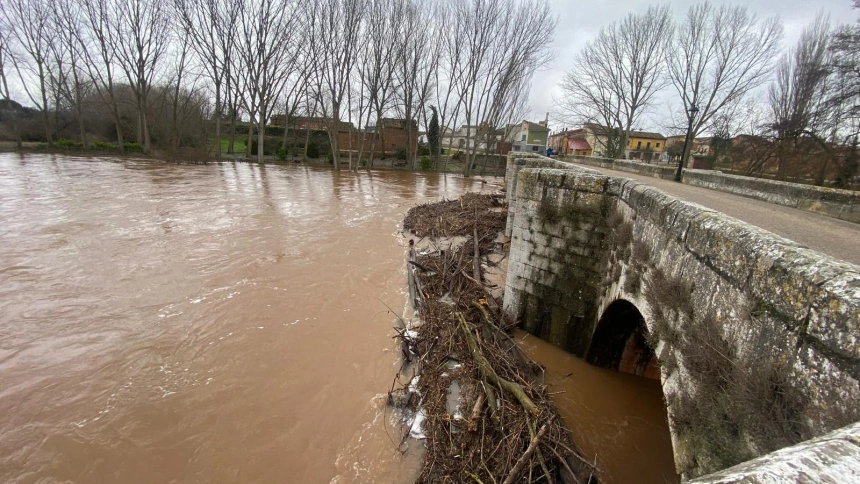 La crecida del Arlanza activa la alerta roja en Palencia y pone en vilo a Quintana del Puente