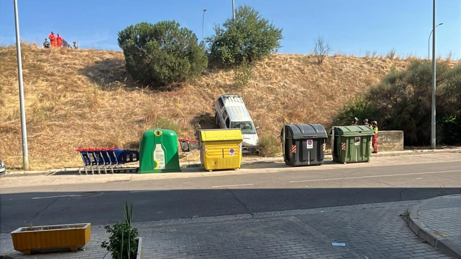 Un coche cae por un terraplen en Francisco Vighi tras intentar evitar a una persona tendida en la calzada