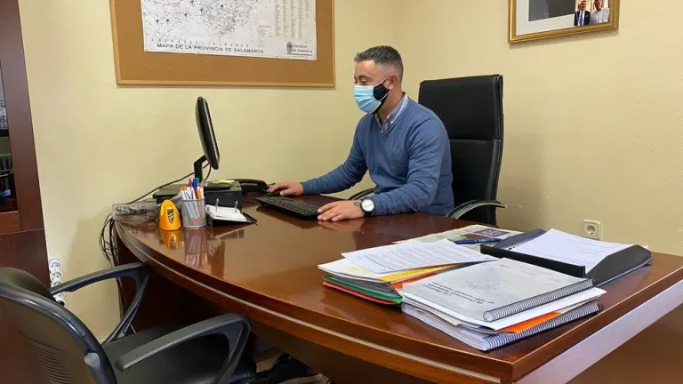 El concejal de Ciudadanos Luis Óscar Bueno en su despacho del ayuntamiento de Cabrerizos