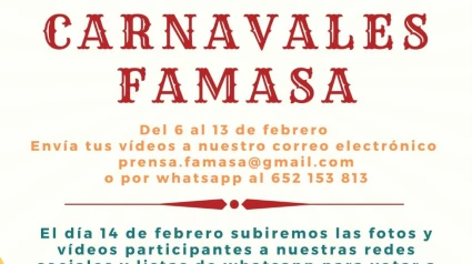 Vete al armario a por el disfraz, hazte un vídeo y lo envías a prensa.famasa@gmail.com o al whatsapp 652.153.813. Tienes plazo hasta el sábado. Desde el domingo se podrá votar por los mejores a través de las redes de la asociación.