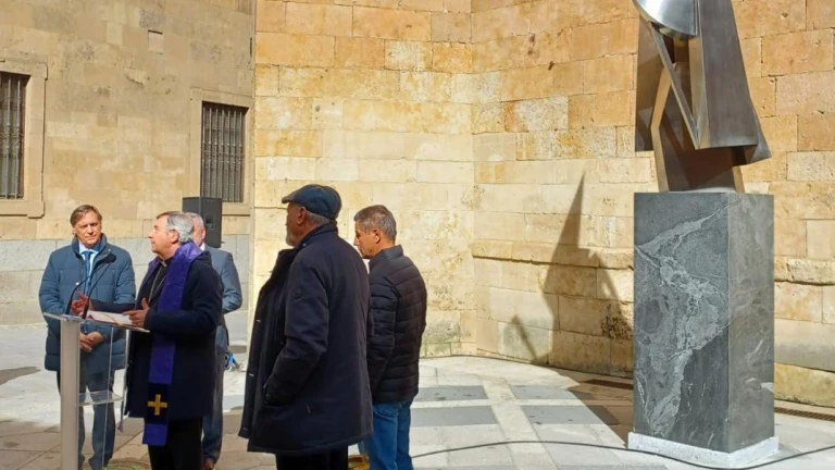Mons. Retana bendice la estatua ubicada en la plaza de San Benito, junto a la calle Compañía