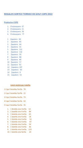 El sorteo de los premios del XXVII Torneo de Golf Cope Salamanca ya se ha realizado y estos son los afortunados, entre los regalos vino, gorras, paraguas y jamones.
