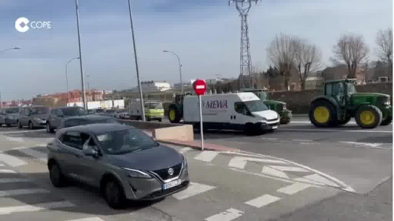Protesta de tractores en la salida de Segovia hacia Madrid