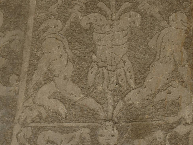 El mes de octubre de 2007 marcó un hito en lo que a intervenciones en esgrafiados históricos se refiere, puesto que finalizaba la primera restauración propiamente dicha de un testimonio medieval de primer orden: la Torre de Arias Dávila. Llevada a cabo por la empresa RestauroGrama Hispania, los espectaculares resultados de esta intervención cambiaron radicalmente lo que hasta entonces pensábamos los estudiosos de este revestimiento sobre su método de realización, dado que sosteníamos el empleo de una plantilla, cuando en realidad se trataba de una compleja decoración gótica dibujada in situ con reglas y compases. Sin abandonar el terreno de la restauración, en la primavera de 2016, a petición de la Comisión de Patrimonio de la Junta de Castilla y León, acompañé a varios de sus miembros a visitar un inmueble ruinoso en la Calle Arias Dávila de la capital, siendo lo más sobresaliente en cuanto a revocos que allí se conservaba, un reloj de sol neoplateresco que respondía a las maneras de Daniel Zuloaga. A la vista de su importancia y singularidad sugerí que se arrancara y se trasladara al Museo de Segovia, puesto que esta institución no contaba con ejemplo alguno de esgrafiado. Felizmente, la pieza hoy se encuentra en el museo segoviano, donde ha sido restaurada por Cristina Gómez González.