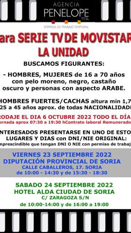 Soria Film Commission colabora con la productora de la serie de televisión de Moviestar + La Unidad en la realización del casting y de la grabación de un capítulo.