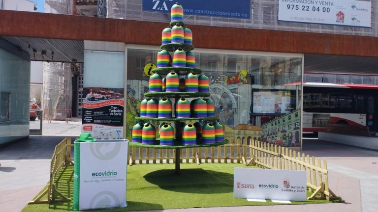 Ecovidrio impulsará el reciclaje de envases de vidrio en Soria con un árbol formado por miniglús
