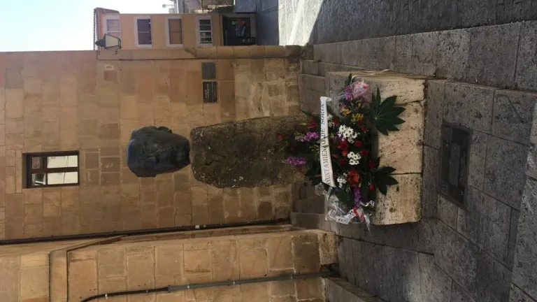 Ofrenda floral en el busto de Machado frente al instituto que lleva su nombre