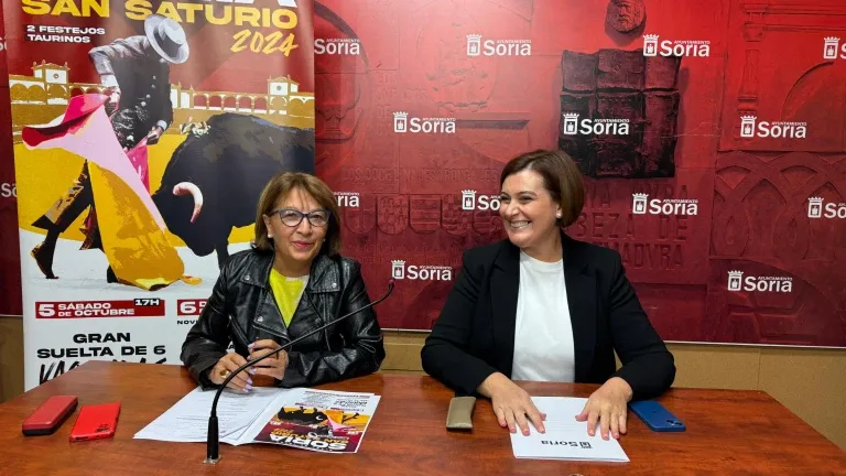 La concejal de Festejos, Lourdes Andrés, y la gerente de Tauroemoción, Silvia San Vicente, empresa elegida en el consejo taurino por peñas y con el visto bueno de la oposición, han presentado estos dos festejos taurinos para las fiestas patronales de Soria.