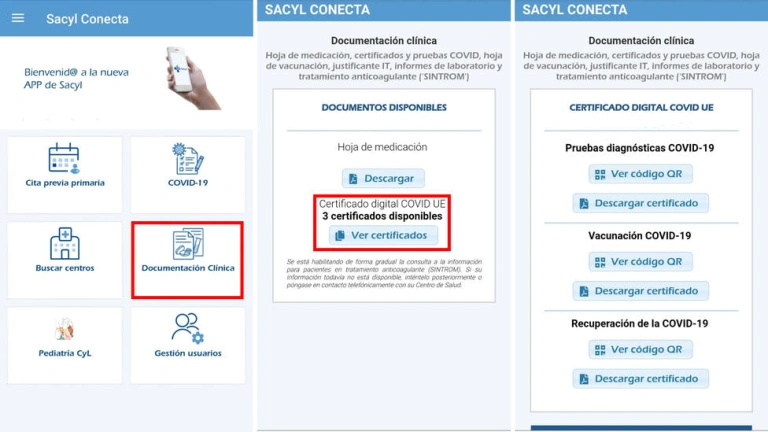 Certificado Digital COVID UE en la aplicación Sacyl Conecta