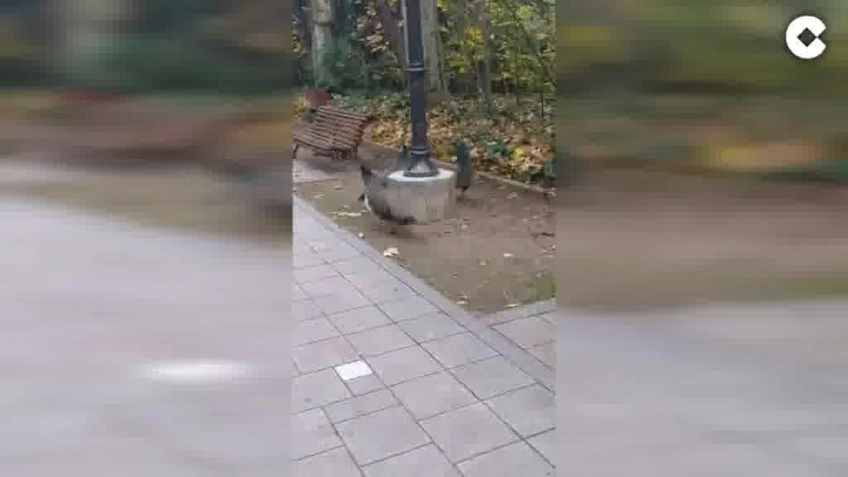 El extraordinario abanico de colores que compone la cola de los machos hace las delicias de los visitantes. Pero como ave impredecible, territorial y huidiza que es, se convierte también ocasionalmente en protagonista de simpáticas imágenes. Como las capturadas hoy por un viandante que, a través de su perfil de Twitter (@samueel_95), ha compartido el momento en el que ha sido sorprendido por tres ejemplares que custodiaban, al ritmo de la música interpretada por un músico itinerante, una farola del Paso Central del Campo Grande.