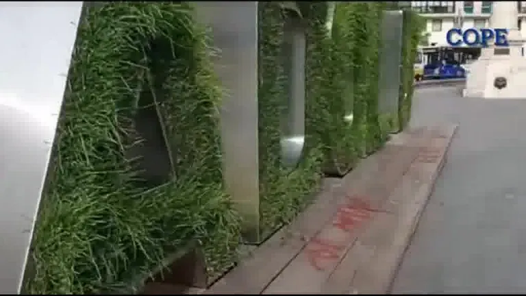 Los vándalos arrancan la letra 'I' del cartel vegetal Plaza Zorrilla y la arrojan en las inmediaciones