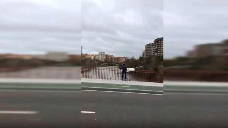 Un menor ha sido grabado en vídeo cuando arrojaba una sombrilla al río Pisuerga, a su paso por Valladolid, desde el Puente del Poniente.